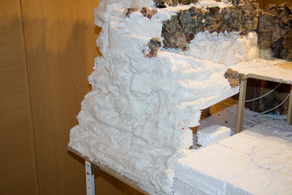 Para mi gusto has dejado formas en la montaña muy redondeadas, lo que después afecta en el pintado, a la hora de dar las veladuras. Yo hubiera hecho partes más angulosas para que no quedase tan homogéneo, fíjate en los trozos e corcho como tienen más recovecos y ángulos.