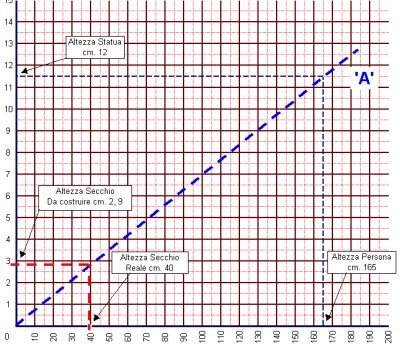 Individuamos un punto “A” del plan obtenido en corrispondencia con el número 12 del eje vertical (altura del pastor) y del número 165 (altura media de una persona real).