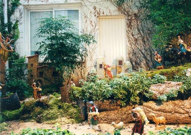 El belen del que te habla Banbi lo hice a la intemperie: corcho y musgo, figuras de marmolina pintadas por mi, construcciones de madera natural el portal y de porex las otras, trabajada con pasta adefix P5 y pintadas con americana. Le dí a las construcciones una manita de barniz mate al agua de la Americana -en expray- y las figuras mate pero barniz normal