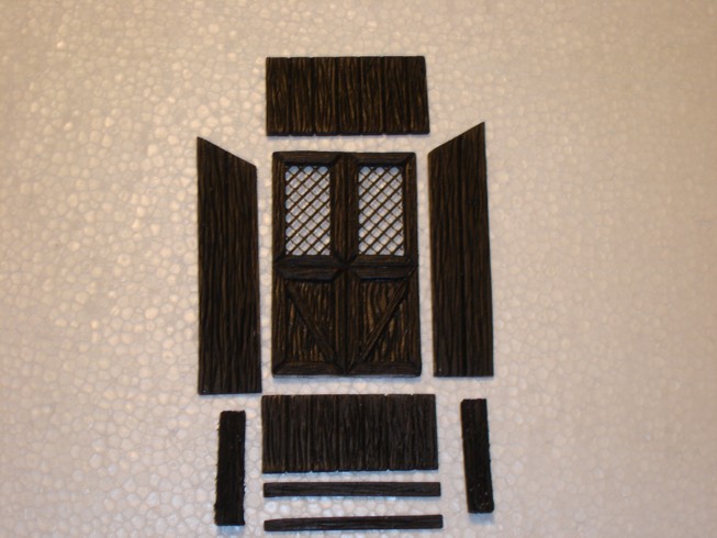 En este paso, es buena idea texturizar el corcho blanco rallandolo con el punzon o cepillandolo con el cepillo de alambre para simular las vetas de madera y los cortes en las molduras.