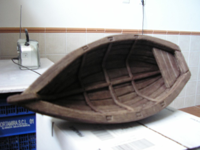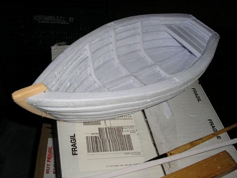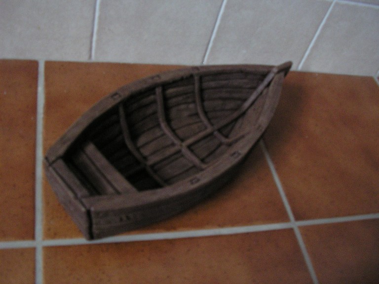 Cooker, Lleva un marrón oscuro de base, algo aguado, para que entre bien en los huecos, y luego veladuras de pincel seco, en marrón más claro y por último en color beige. La barca está hecha en porexpán y la pintura es plástica, debe ser resistente y debe flotar, no lo probé.......... si te animas y la haces, nos cuentas que tal flota.
