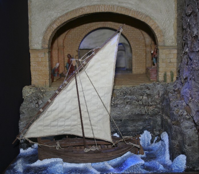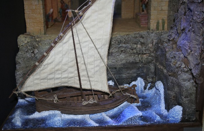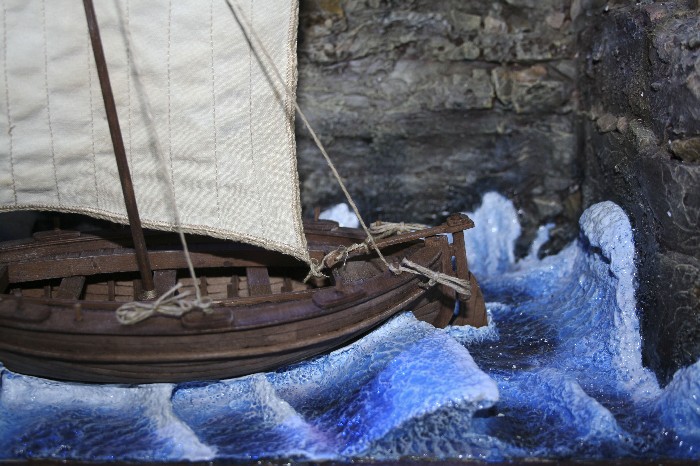 Te comento que para las olas encontre hace un par de años un proceso para hacerlo. Primero tomas una lamina de poliestireno expandido de unos 3 centimetros de espesor, y con un rodillo de los usados en panaderia presionas con mucha fuerza en determinados sitios, donde deseas hacer la ola. El poliestireno se quedara con la forma. En mi caso, me pare literalmente sobre el rodillo y asi logre darle la forma. Tambien he hecho estas olas con una hoja de papel de lija de grano muy grueso, y con esto desgasto el poliestireno donde deseo que este cada ola. Una vez estes satisfecho con la forma de las olas, se procede a cortar la forma del casco en el poliestireno, para que parte del este quede "bajo agua". Luego se pasa a pegar papel de cocina (tohallas de papel de secado en cocina) bien impregnadas en cola blanca disuelta en un 50% con agua. Mientras las vas pegando, con un pincel tratas de empujar el papel hacia un lado, dando textura a las olas. SI se rompe, no importa, pues pegas otro pedazo encima.