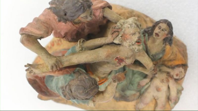 Un detalle de la preciosa Virgen, el Ángel y la marca....