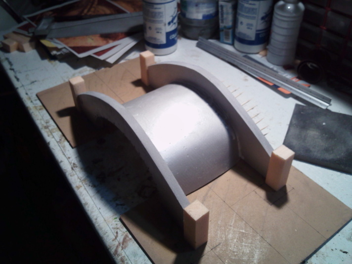 Hoy le he dado otro avance, he acabado las piedras del arco y le he dado la primera mano de escayola, así la primera rampa.