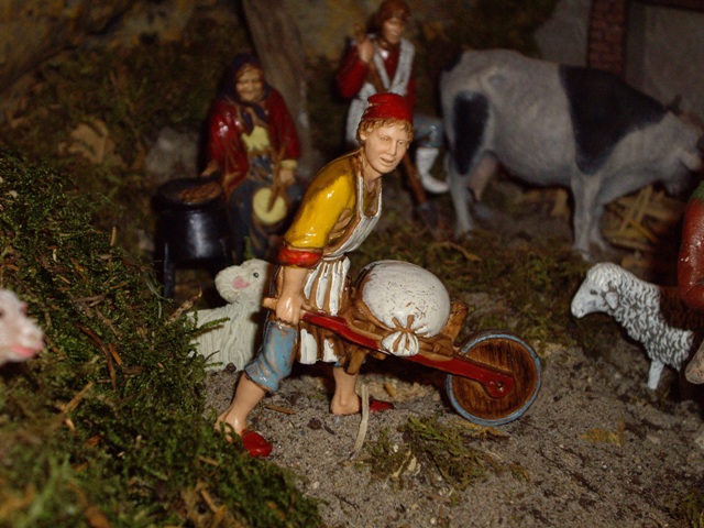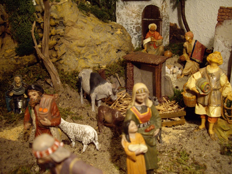 Belen instalado en casa con unas medidas de 1.70 largo x 0.80 ancho hasta mitad y 0.50 ancho el resto. En cuanto a figuras hay las de la colección Delprado, de Fontanini en 12 cm., de resina económica, de Landi en 10 cm. y las del fondo son de 7 cm. y pertenecen al belen familiar comprado en los años sesenta. Podeis ver el resto de fotos en Álbumes. Espero que os guste. Un saludo.