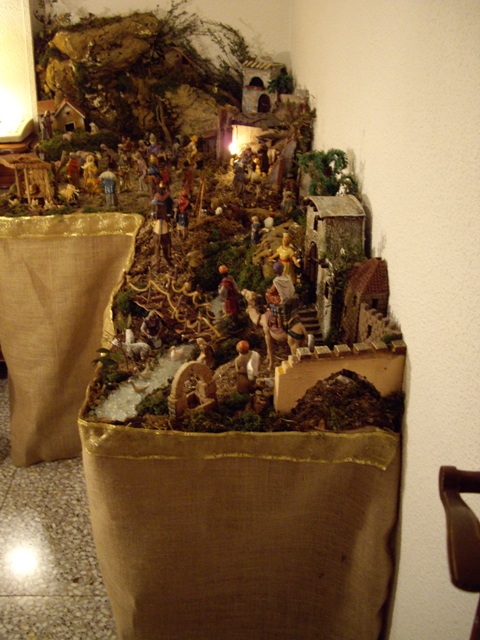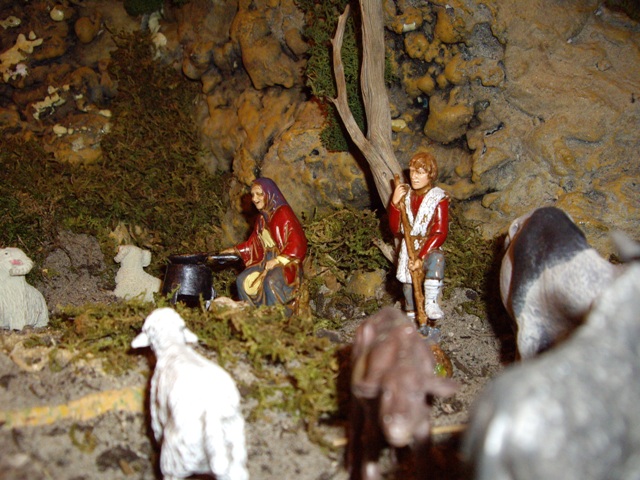 Belen instalado en casa con unas medidas de 1.70 largo x 0.80 ancho hasta mitad y 0.50 ancho el resto. En cuanto a figuras hay las de la colección Delprado, de Fontanini en 12 cm., de resina económica, de Landi en 10 cm. y las del fondo son de 7 cm. y pertenecen al belen familiar comprado en los años sesenta. Podeis ver el resto de fotos en Álbumes. Espero que os guste. Un saludo.