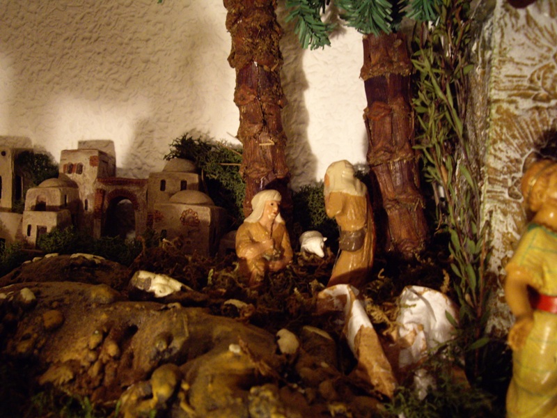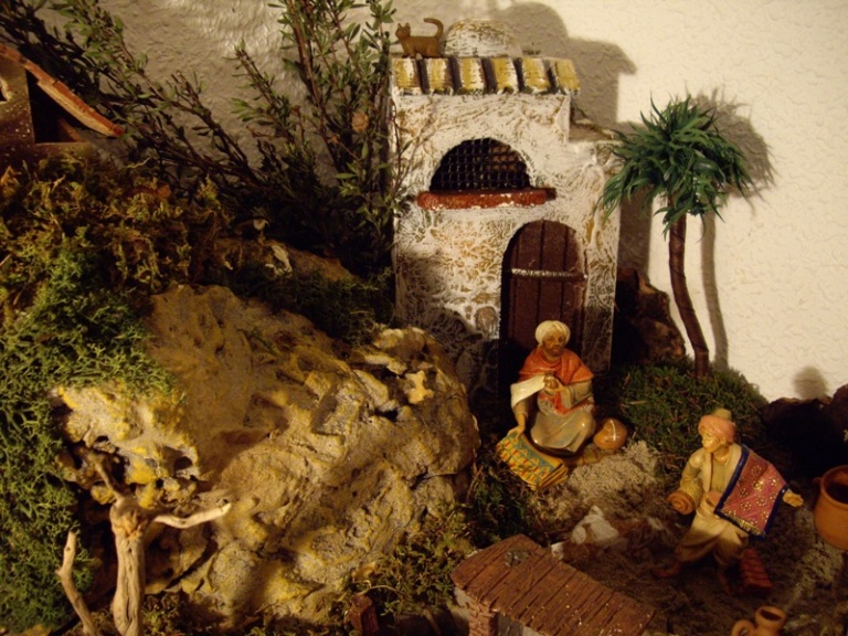 Belen instalado en casa con unas medidas de 1.70 largo x 0.80 ancho hasta mitad y 0.50 ancho el resto. En cuanto a figuras hay las de la colección Delprado, de Fontanini en 12 cm., de resina económica, de Landi en 10 cm. y las del fondo son de 7 cm. y pertenecen al belen familiar comprado en los años sesenta. Podeis ver el resto de fotos en Álbumes. Espero que os guste. Un saludo.