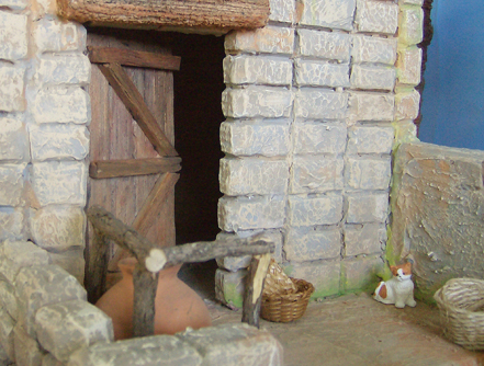Me gusta tu belén. Los detalles también, la puerta, el carro, las miniaturas, las figuras, me gustan los belenes con muchas ovejas.