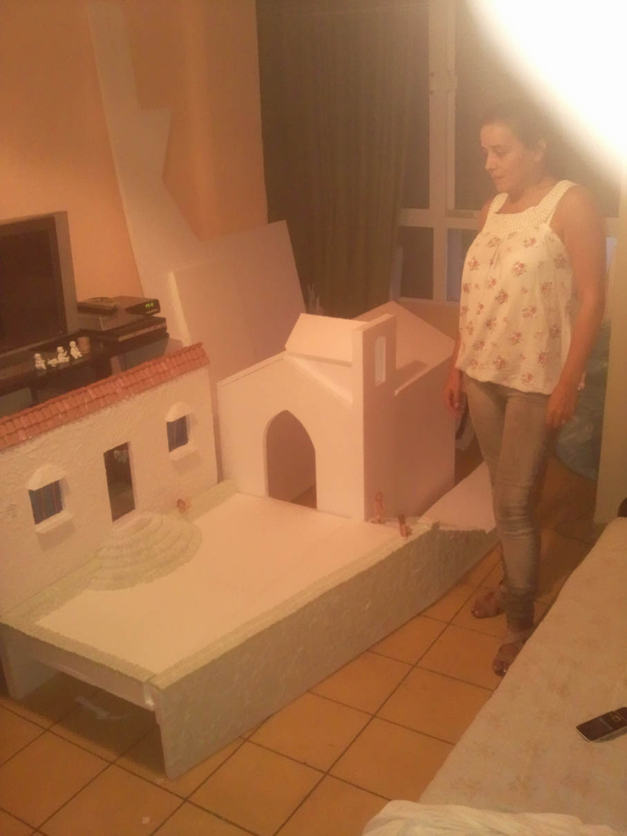 Desde el 2008 pongo mi Belén en un bar "Circulo Recreativo Pedro Medina Silva" conocido como "el Casino", en el pequeño y precioso pueblo de la Sierra Norte de Sevilla, donde nacieron mis padres, La Puebla de los Infantes. En casa seria imposible y por eso me he decidido hacer esa mega construcción, nunca mejor dicho.