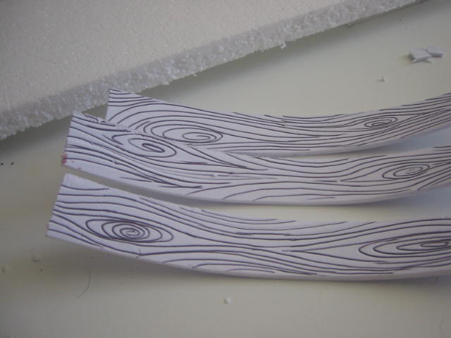 Las de madera dibujo las vetas o supuestas vetas con un boli, y despues las cepillo con un cepillo de alambre fina, siempre en la direccion de la veta. Cualquier cosa que te pueda echar una mano.