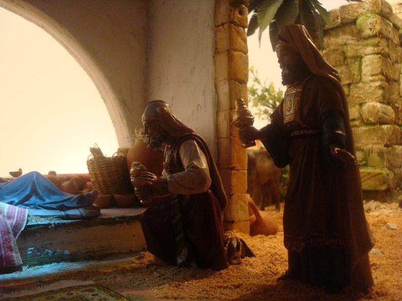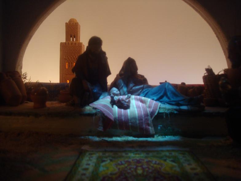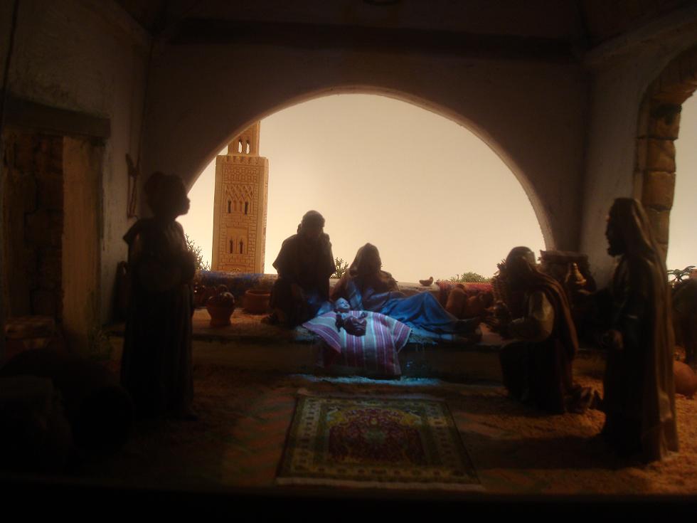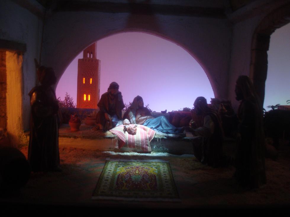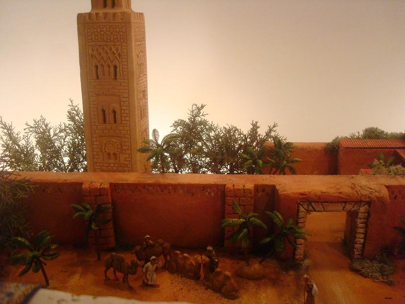 Como lo prometido es deuda, os pongo las fotos del 2º plano, con el alminar, "inspiración magrebí", y un detalle de los reyes.