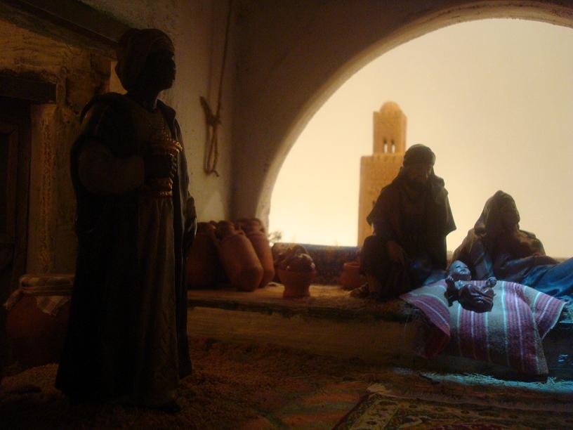 Como lo prometido es deuda, os pongo las fotos del 2º plano, con el alminar, "inspiración magrebí", y un detalle de los reyes.