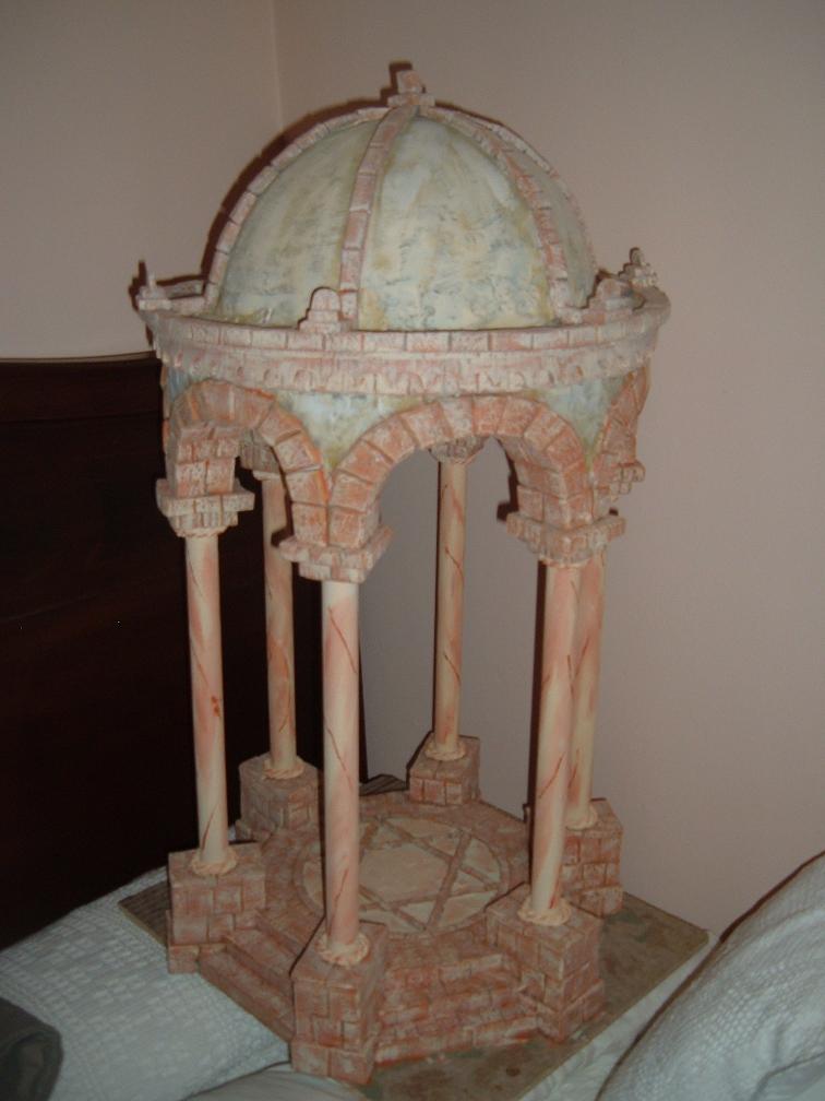 Muy buen trabajo, el templete está fantástico y muy bien trabajado, la vista a través del arco muy bonita, solo como han dicho otros compañeros, más expertos en pintura que yo, matiza un poco más los tonos para que no se vea tanto contraste, por lo demás muy bonito todo.