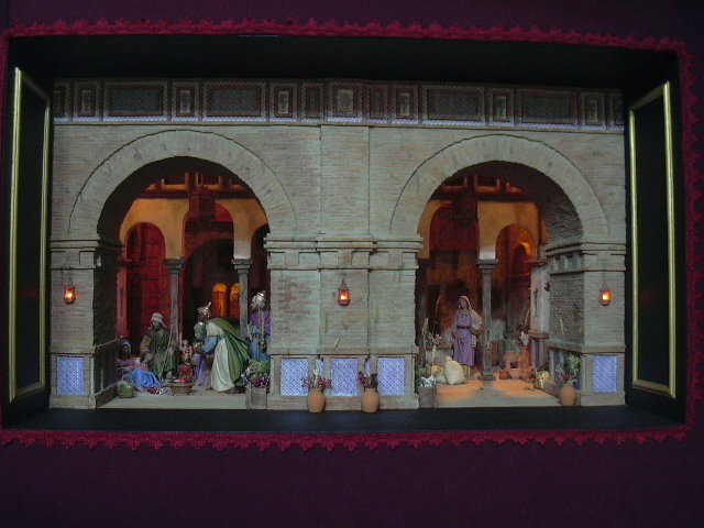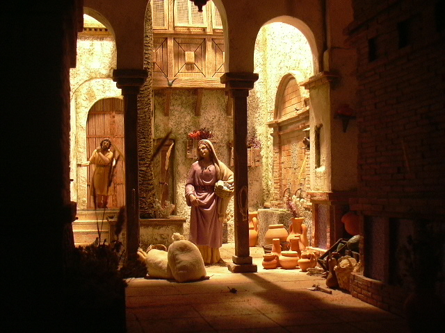 La vista general es de arte! Fabuloso el efecto claroscuro del Nacimiento con el patio detrás, y espectacular lejanía por la ventana. Belenazo del bueno. Me encanta. Enhorabuena.