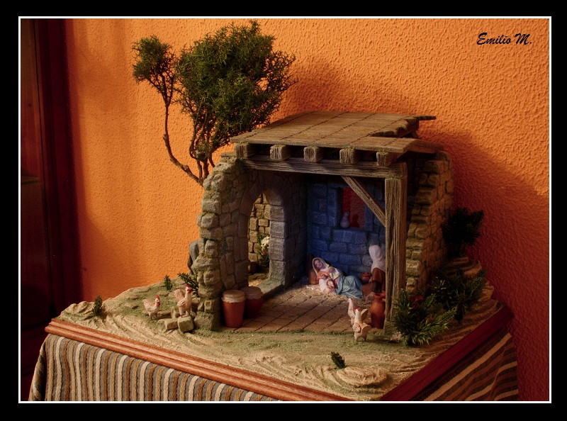 ¿Que mas se necesita para conmemorar el nacimiento de Dios?, lo que pasa que viniendo de las manos de un humilde pero gran artista, aunque mucho mas gran persona, entonces lo sencillo se hace sublime, y eso es lo que muestra el "portalico" (que dice otro grande, galtxa) de Emilio. De estas pequeñas cosas está llena la vida, pero que solamente se aprecian en toda su amplitud en Navidad.