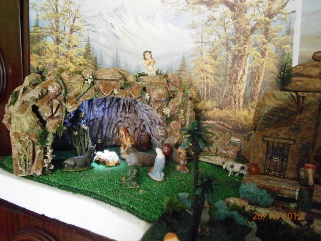 La verdad es que no pensaba ni montarlo pero, en el último momento, pudo más la tradición que el sentimiento y teniendo en cuenta que durante el año había construido la cueva, el huerto, el horno y el decorado nuevo decidí hacerlo a última hora deprisa y corriendo pero por lo menos, un año más, quedó montado.