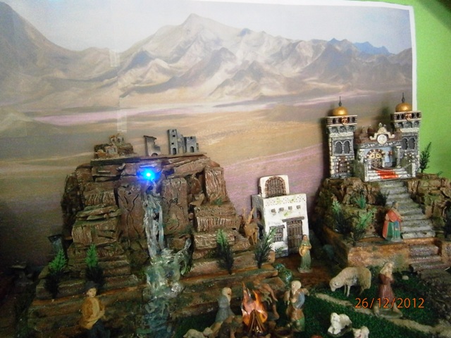He puesto luces en el misterio, el nacimiento de la catarata y las brasas del horno pero no se aprecian por que con poca luz me salen las fotos borrosas y con flash pues no se ven pero esto es lo que hay y por este año, al menos, ha de servir.