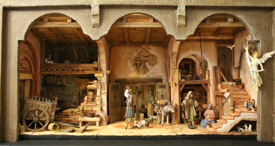 Aquí teneis el Belén que tengo en casa este año. Lo he reformado colocandole por delante una arcada con idea de dotarlo de mayor profundidad y que resulte más vistosa su presentación. En el interior he realizado algunos pequeños cambios, pero sobre todo, la novedad es el carro que podéis ver a la izquierda, la colocación del Angel a la derecha y poco más.