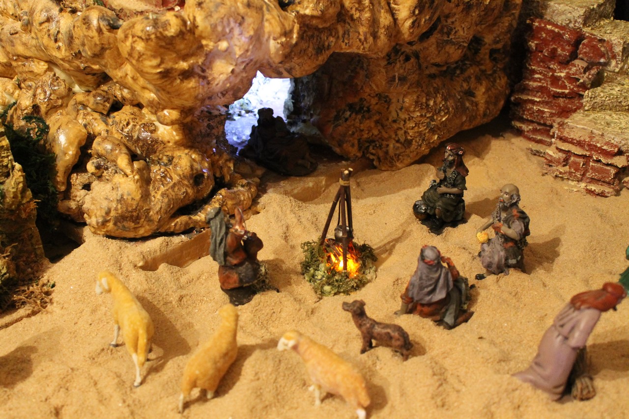 Este año he ampliado el Belen a los tres metros cuadrados. A partir del año que viene no se que voy a hacer. Mi mujer me va a echar de casa. Espero que os guste. La fuente sale agua natural, y la cueva donde aparece el ángelde la aparición a los pastores se enciende cuando te acercas al sitio a mirar, cuando te detecta un sensor que hay a los pies del Belen, las palmeras son hechas a mano y los arboles también. Espero os guste