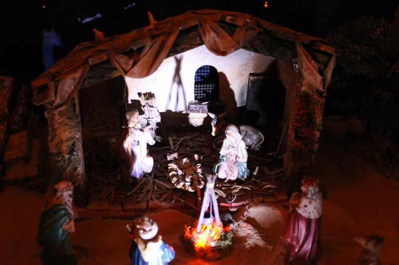 Este año he ampliado el Belen a los tres metros cuadrados. A partir del año que viene no se que voy a hacer. Mi mujer me va a echar de casa. Espero que os guste. La fuente sale agua natural, y la cueva donde aparece el ángelde la aparición a los pastores se enciende cuando te acercas al sitio a mirar, cuando te detecta un sensor que hay a los pies del Belen, las palmeras son hechas a mano y los arboles también. Espero os guste