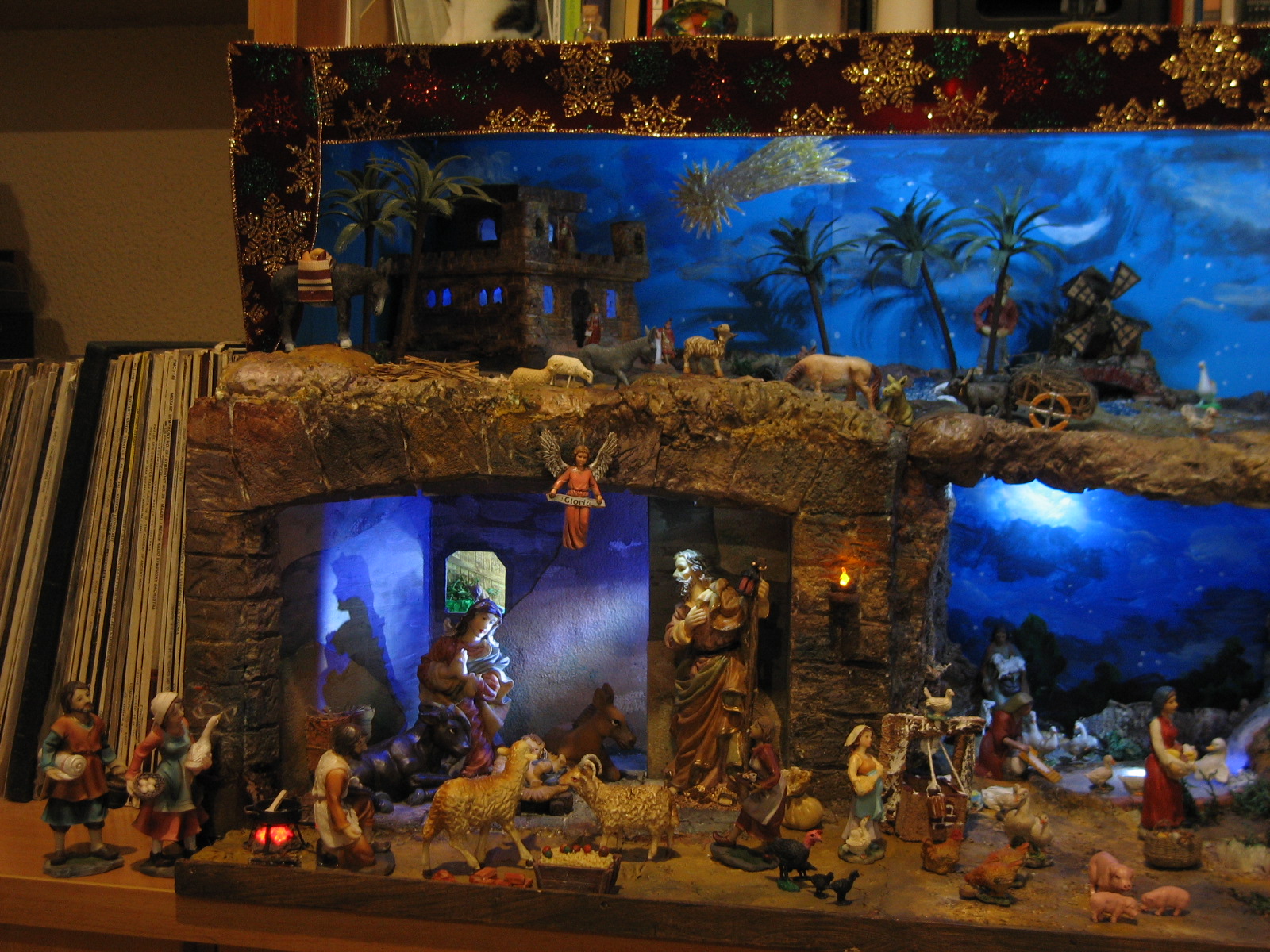 Aquí presento unas fotos del belén definitivo que he montado en casa, en una estantería de 1x0,5x05 metros.