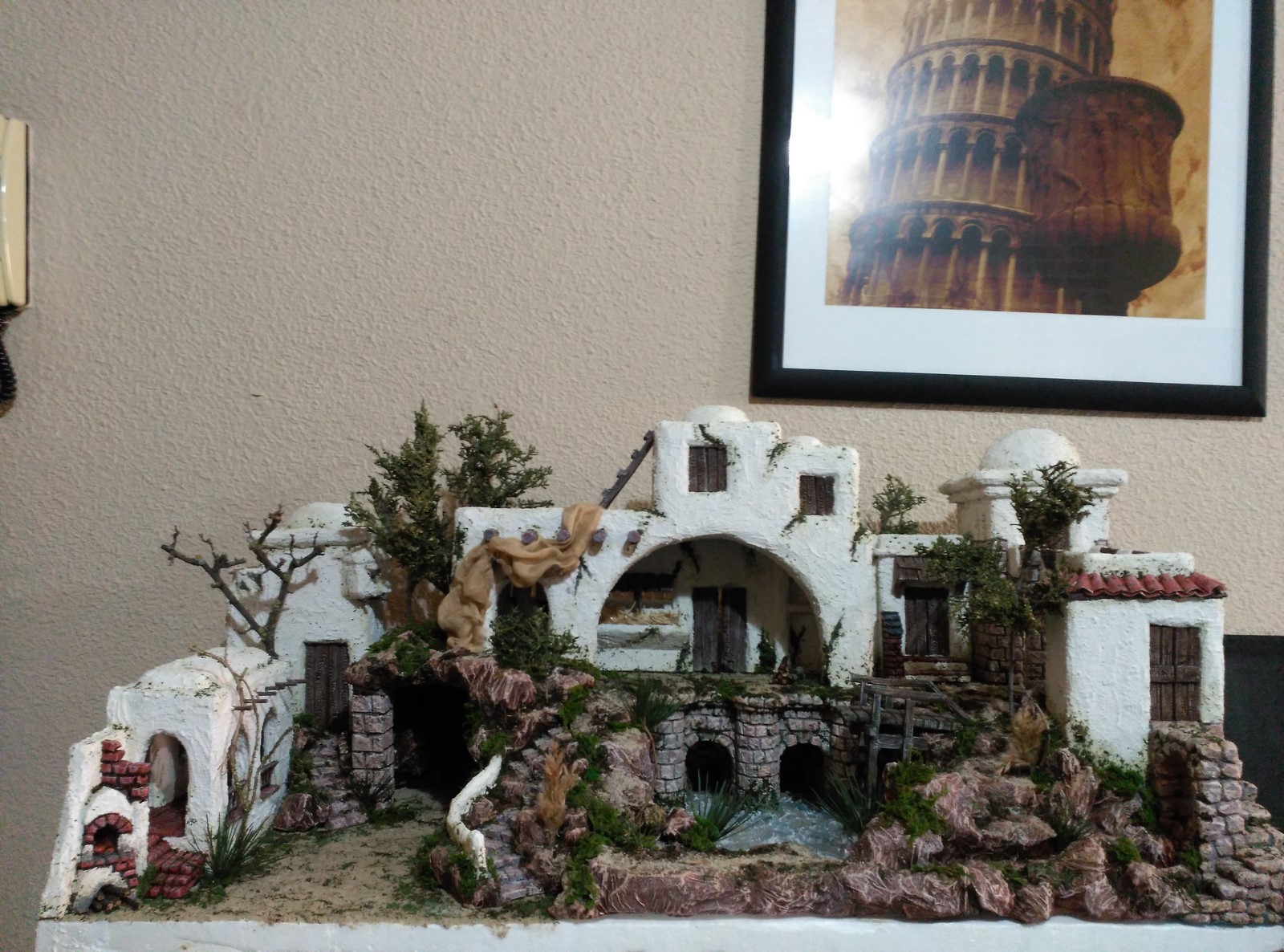 hola de nuevo, aqui traigo como cada año el belen que voy a colocar en mi puesto de trabajo, esta vez es un pequeño poblado colocado en una caja de corcho blanco de esas del pescado, las medidas son de 80de ancho por 40 de fondo y 45 de alto, las figuras que iran son de 8 cm, este año todo mini. todas y cada una de las piezas, (que por cierto se desarma entero) las fui copiando de internet, siento decirlo NO son originales pero como siempre digo yo....a mi humilde manera, lo dicho despues de copiar unas cuantas casitas las fui colocando segun me venia bien sobre un paisaje inventado. Espero que les guste y seguiremos creando como cada año. Un abrazo.