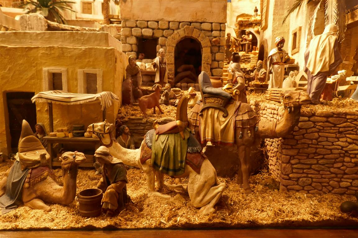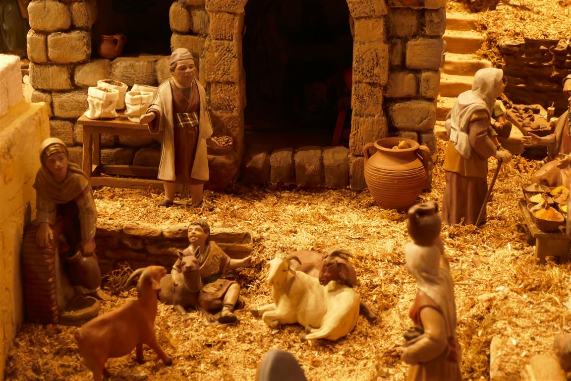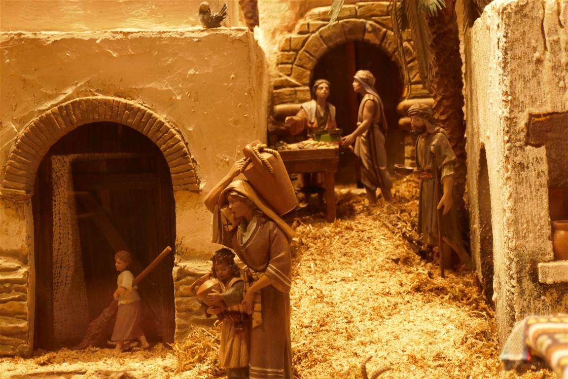 1º Panorama , Nazaret , con escenas de la Anunciación a Maria, el sueño de San Jose , el Taller de San Jose , la Visitación a Santa Isabel , la Anunciacion de los pastores , Caravana de los Reyes y escenas varias de oficios...