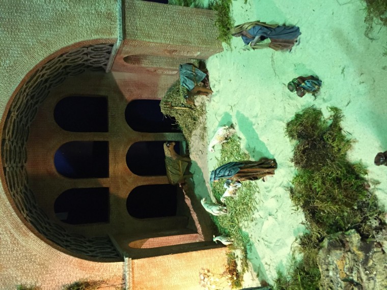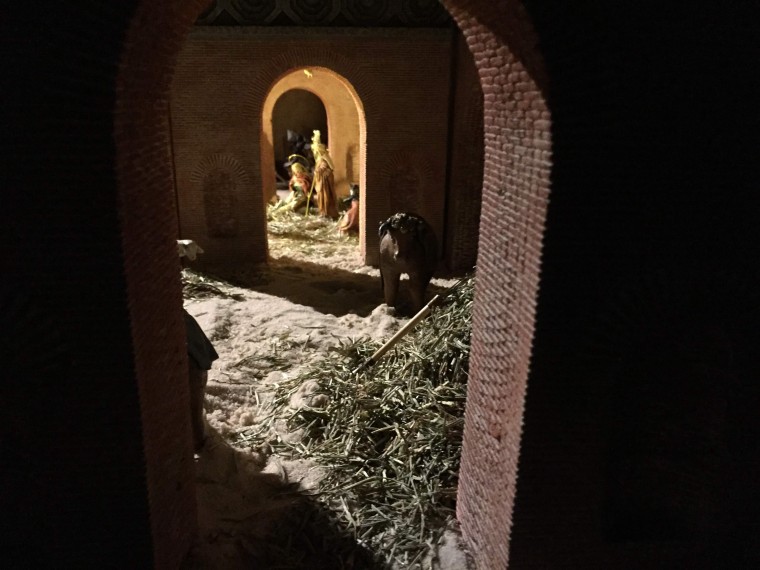 En el belén la basílica mide 2,10 m y a escala tendría que medir unos 4,5m, en la Parroquia el hueco es solo de 3,5m y tampoco habría tenido paciencia para tantos ladrillos.