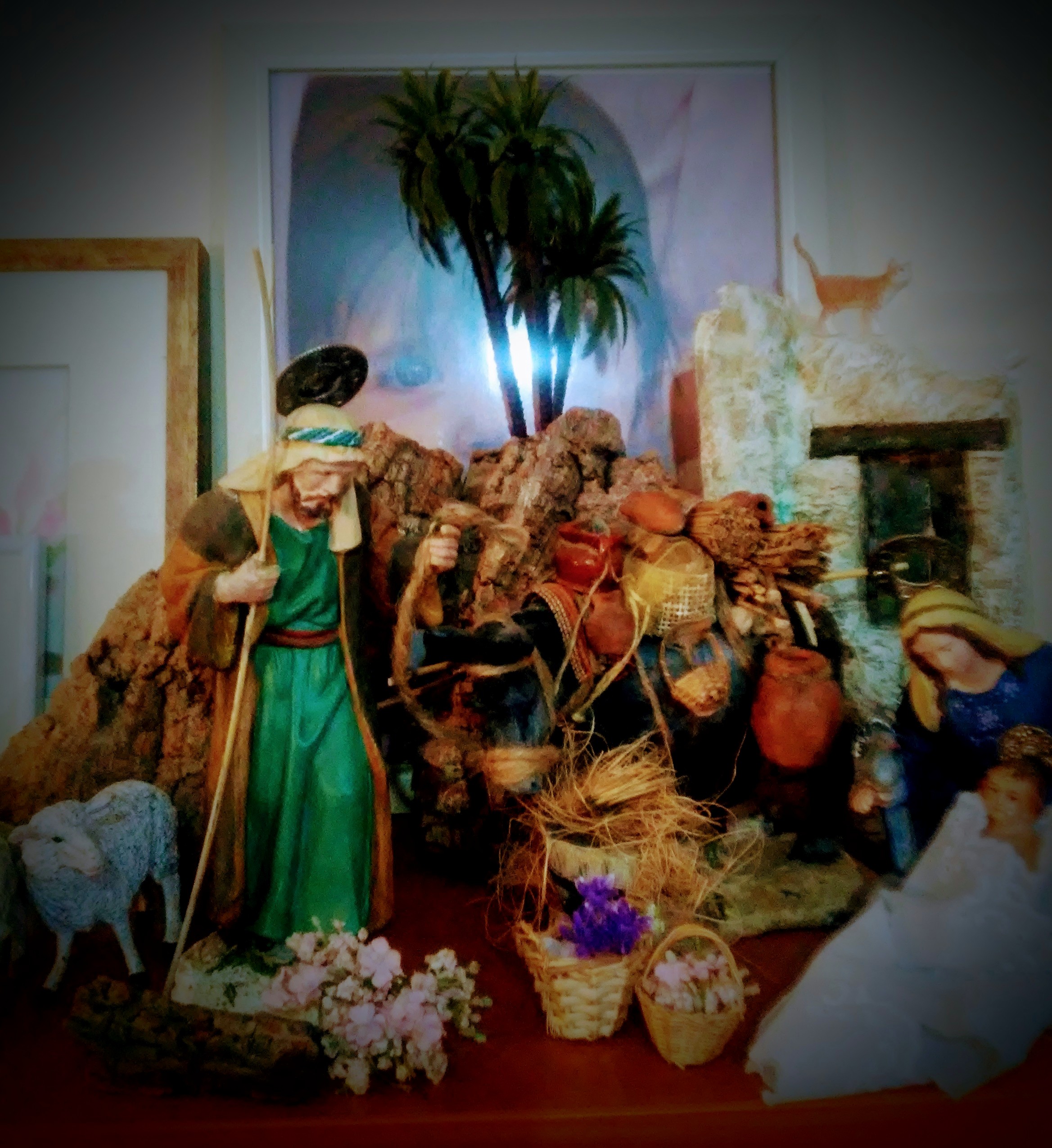 Para no perder la tradición os dejo unas fotitos de este año.No pensaba hacer nada , pero he colocado el nacimiento con una casita de fondo y unas palmeritas, un fuerte abrazo a todos en un año tan complicado.