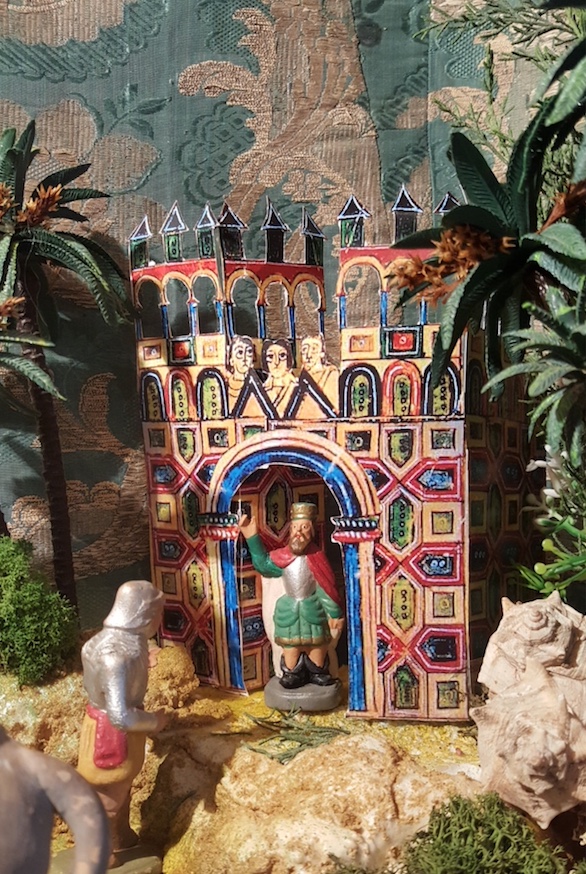 Las figuras de cacharrería tienen un encanto especial y en este belén las has colocado un marco muy apropiado. Una apuesta muy original.