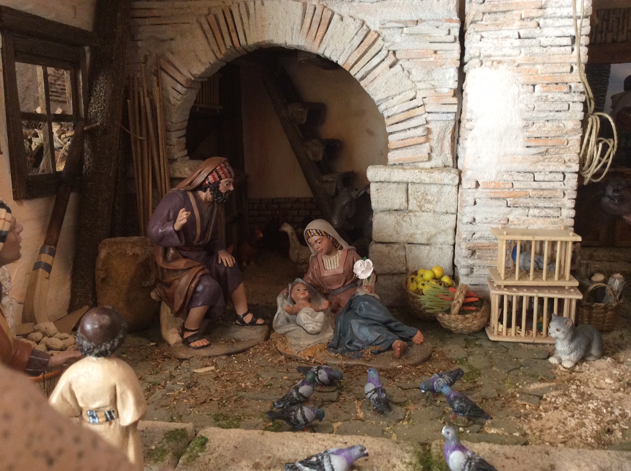 belen montado en casa,con unas medidas de tres metros de largo y uno veinte de ancho con figuras de Mayo y Angeles Camara.