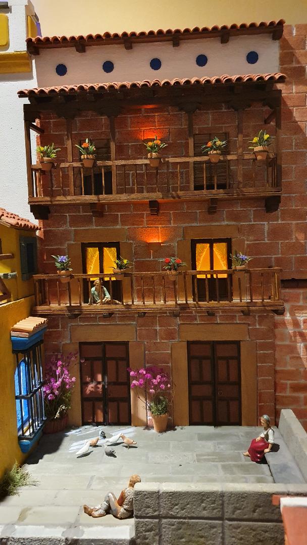 He realizado tres cuerpos diferentes; el fondo con sus casa con balconadas, la casa izquierda con arcos y las casas centrales de tres alturas.