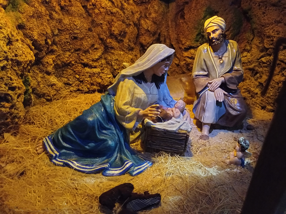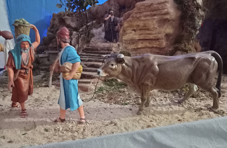 Este año se han estrenado las figuras del nacimiento, junto con la mula y el buey, asi como, el descanso de los camellos con sus pajes. Todas ellas pintadas a mano.