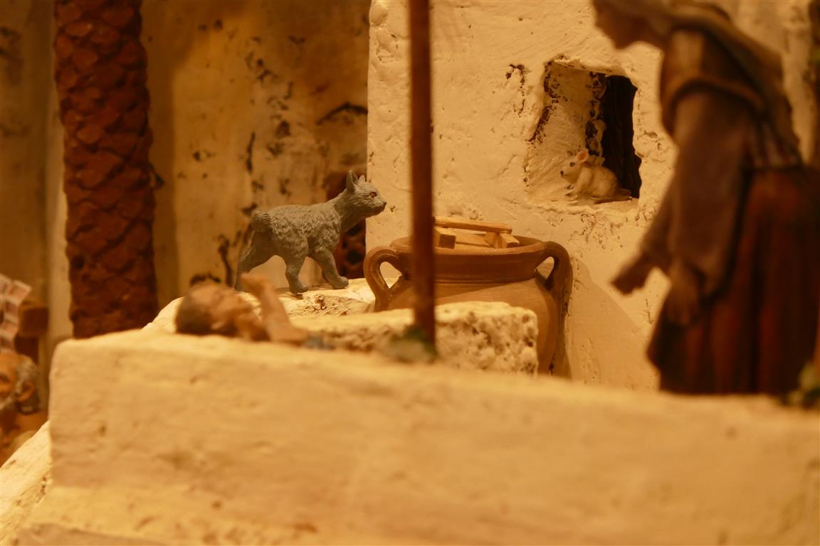 Hay algunos pequeños desperfectos que se aprecian en las fotos , alguna figura tumbada , complementos mal colocados , exceso de musgo en algunas zonas etc , fueron debidos a que sufri una invasion de ratones reales que causaron algun que otro estropicio , sobre todo en los complementos que llevan semilla naturales, de las que no dejaron ni una... y dado que el Belén no es accesible una vez montado , no hubo forma de reparar los daños en su totalidad. Una mas anecdota que añadir a la historia de mis Belenes...