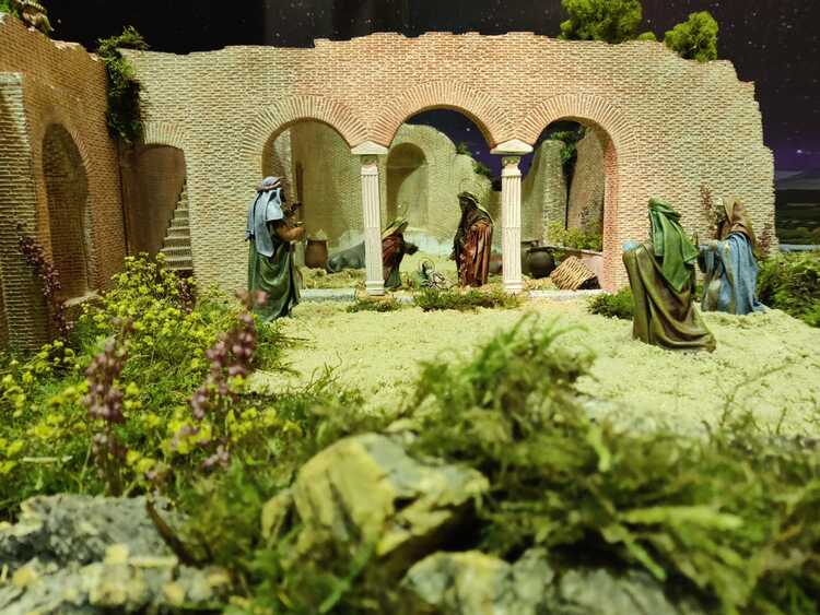 Este año es una construcción que hice para el Belén de la parroquia en 2019 basado en unas ruinas romanas de puerto de Ostia. y las palmeras que hice también para la parroquia en 2016.