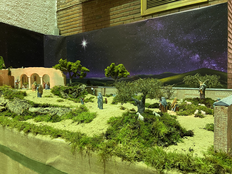 Es muy sencillo, porque estaba muy cansado, lo puse justo al día siguiente de montar el Belén de la parroquia, que por disponibilidad de la Iglesia hay que montar un sábado de 9 de la mañana a 10 de la noche. Básicamente lo montamos entre un hermano mío y yo, y aunque es sencillo, siempre nos falta tiempo. El sacerdote, que además es amigo y mi mujer no ayudan a recoger todo lo que manchamos, que no es poco para que la iglesia al día siguiente esté en condiciones.