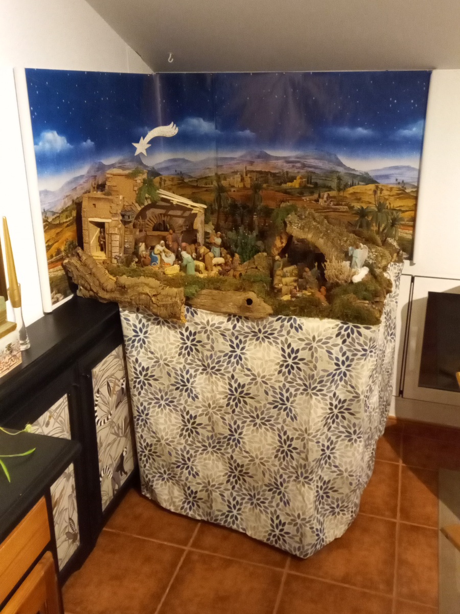 Esa tarde del 4 de enero antes del día del reyes de las más frias de esta Navidad por el contrario fue muy agradable al pasarla con unos buenos amigos. Fue otra sorpresa ver este belén en directo, muy bonito y recogido en una esquina del salón, muy rico en detalles, desprendía ese calor del hogar en Navidad, muy impregnado de la personalidad de su autor, como la buena conversación, recuerdos, roscón...