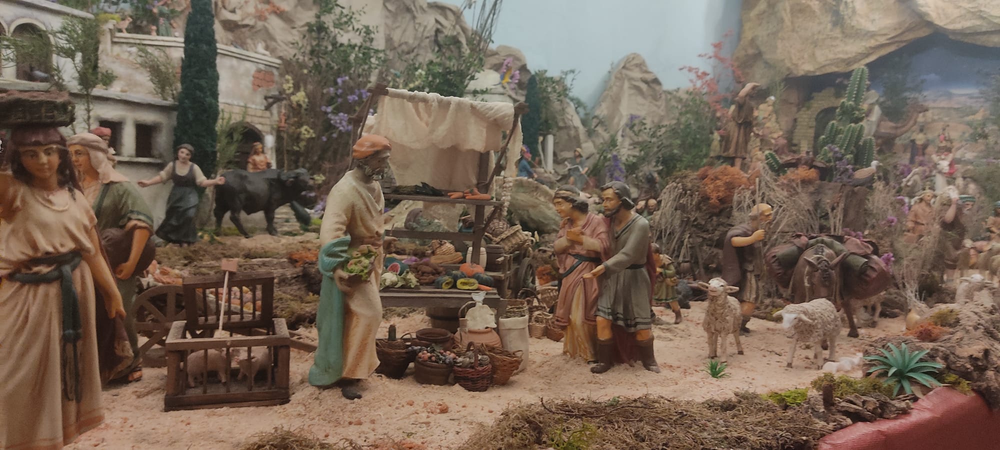 Impresionante colección de figuras de Olot en un pesebre realmente evocador.