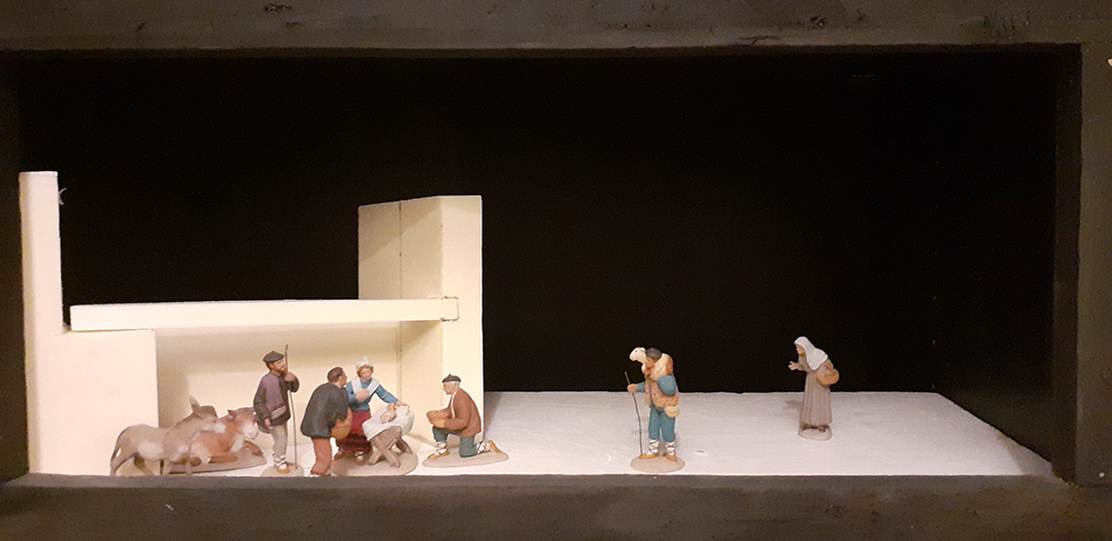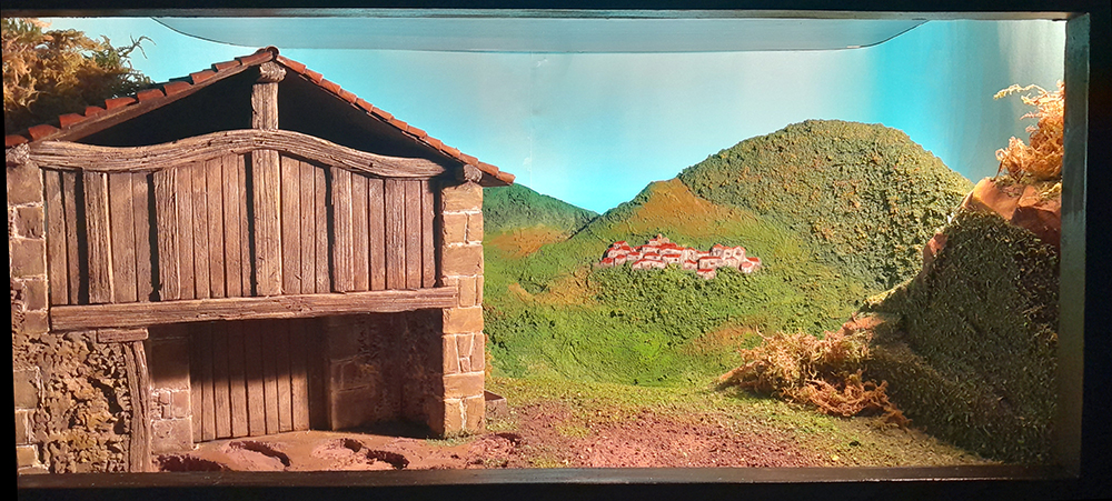 Mi primera idea era reproducir algún caserío, la plaza de un pueblo... rápidamente lo descarté: Jesús no nace en el centro del pueblo ni en una casa acomodada... Jesús nace al margen, en un lugar inesperado, en principio inapropiado... en un establo de animales. Hay que salir a buscarlo.