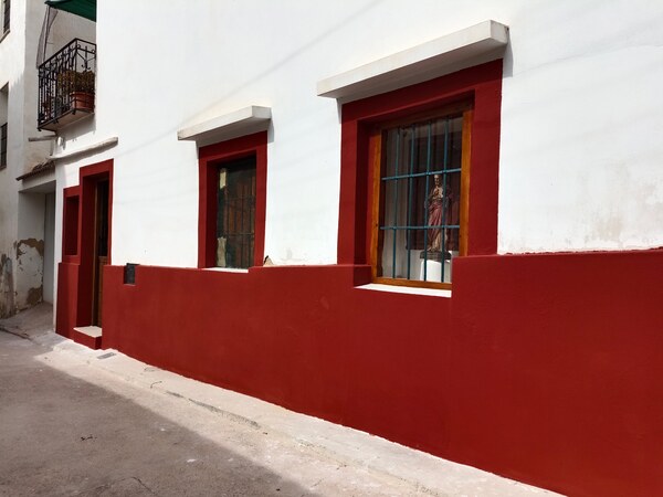 Resulta que en el taller que he arreglado este verano, he trasformado una puerta en ventana hornacina. Para poder exhibir figuras de belen u otras de caracter sacro, de tal modo que se puedan contemplar desde la calle. La hornacina tiene una ventana interna que me permite ubicar las figuras y una reja exterior con una lamina de poliuretano trasparente para protección.