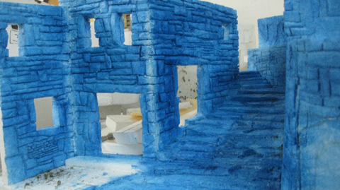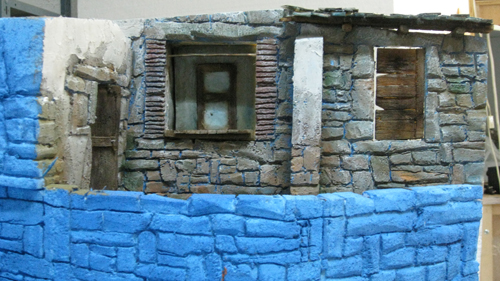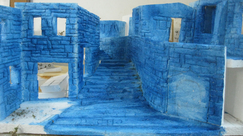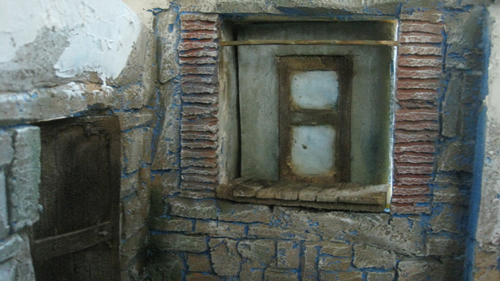 Me faltan todas las "carpinterias" y los tejados...pero ya no podia mas y me he puesto ha darle algo de color; la base nada mas.