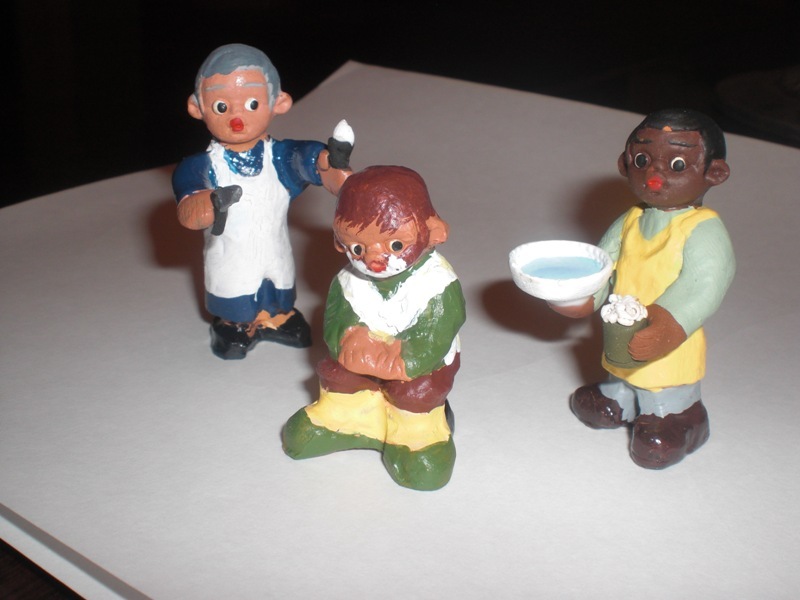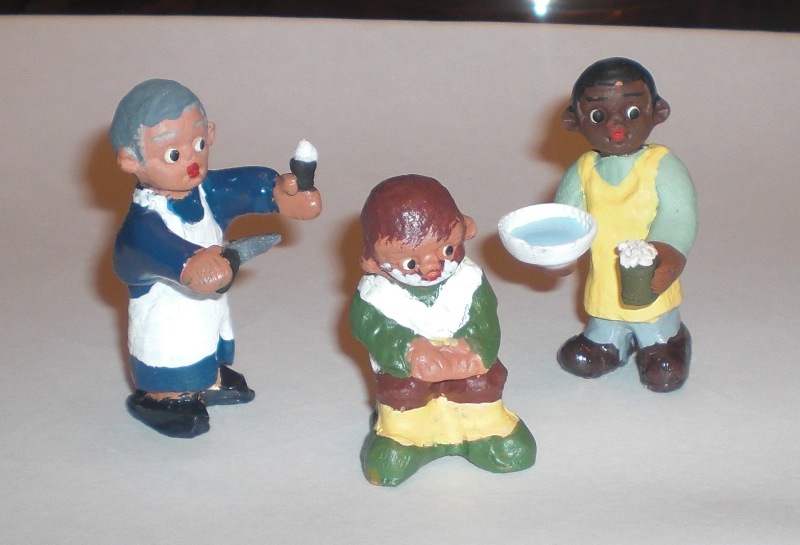 Esta noche quiero terminar las figuras de la barbería, ya tengo el barbero (el Papa) y el cliente, solo me falta terminar al mancebo (Monje negrito)