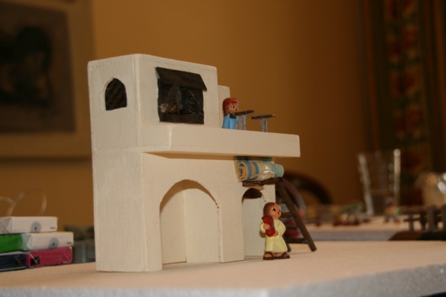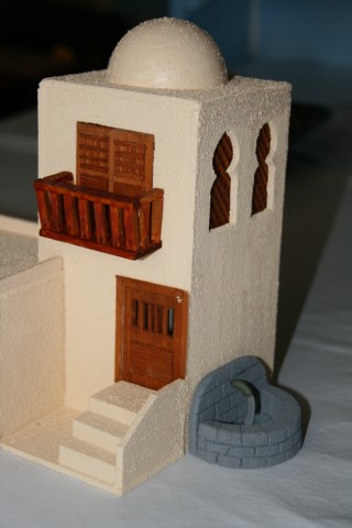 Las cúpulas, pues depende del efecto que quiera darle a la construcción, unas veces las hago yo misma y otras uso bolas de porex que puedes encontrar en distintos tamaños en "Casa Lara", por ejemplo (Calle Mayor, 82).