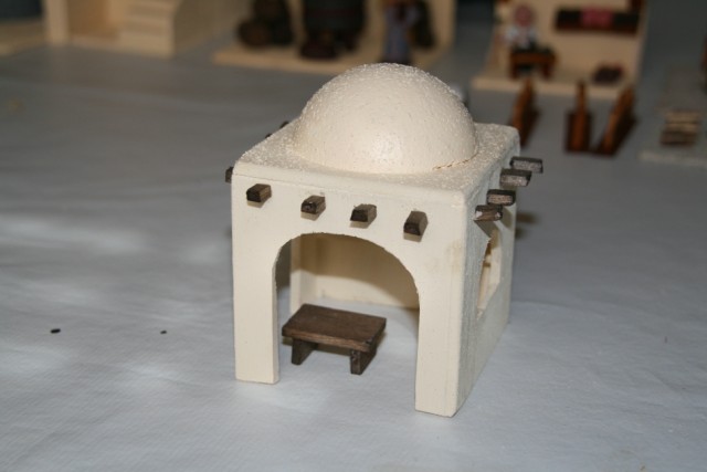 Las cúpulas, pues depende del efecto que quiera darle a la construcción, unas veces las hago yo misma y otras uso bolas de porex que puedes encontrar en distintos tamaños en "Casa Lara", por ejemplo (Calle Mayor, 82).