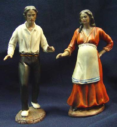 Desconozco si hay más artesanos de este tipo en la zona andaluza; si alguno de allí nos puede refrescar sería maravilloso conocer sus obras. En Andalucía hay ahora unos cuantos artesanos, o mejor dicho imagineros (están más enraizados en como se vive allí la religiosidad) que son realmente extraordinarios y para muestras ya han salido unos cuantos en este foro como Raposo, Oviedo, Rodríguez Pazos....que sus obras colmarían, no sólo cualquier colección, si no que darían vida a cualquier belén, pero también limitan más la imaginación, en cambio los costumbristas dan otra visión, algo que muchos hemos logrado ver y vivir (montar en el trillo, las vacas....la escuela con el pizarrín....el curilla con el bonete....monaguillos...) y que transmiten una cercanía que los "otros" nunca lograrán, matizo me refiero a figuras pseudo hebreas-hebreas que por muy bonitas que sean y que las hayamos puesto en nuestros belénes toda la vida es difícil que nos transporten a una época que no hemos vivido, a pesar de las magníficas representaciones y ambientaciones que muchos hacen, porque todas están basadas en el romanticismo del XVIII en adelante y en la idealización que nos transmiten los viajeros sobre esos países y esas culturas, porque me pregunto ¿en que documentación se basan Mayo, Raposo, Pazos etc., para las vestimentas y “abalorios”?, ¿en las Escrituras? ¿En los viajeros Románticos? ¿En la imaginería barroca? ¿En las películas? ¿En el vestir actual? ¿En la Arqueología? ¿En la Antropología?, y eso nos lleva a otra pregunta ¿Licencias o Anacronismos? ¿Conveniencia o Costumbre?, quizás la cosa sea más sencilla y entonces estamos hablando “Por Convencionalismo” y por imaginación. En cambio los figuristas costumbristas lo tienen mucho más fácil en este tema porque lo estamos viviendo hoy, ayer…al curilla con bonete y sotana le he conocido “ayer”, la trilla he estado montado en el trillo poniendo la palangana, cortar la hierba todavía se hace, la escuela con bancos corridos de madera y la maestra/o enseñando las primeras letras también y así un montón más.