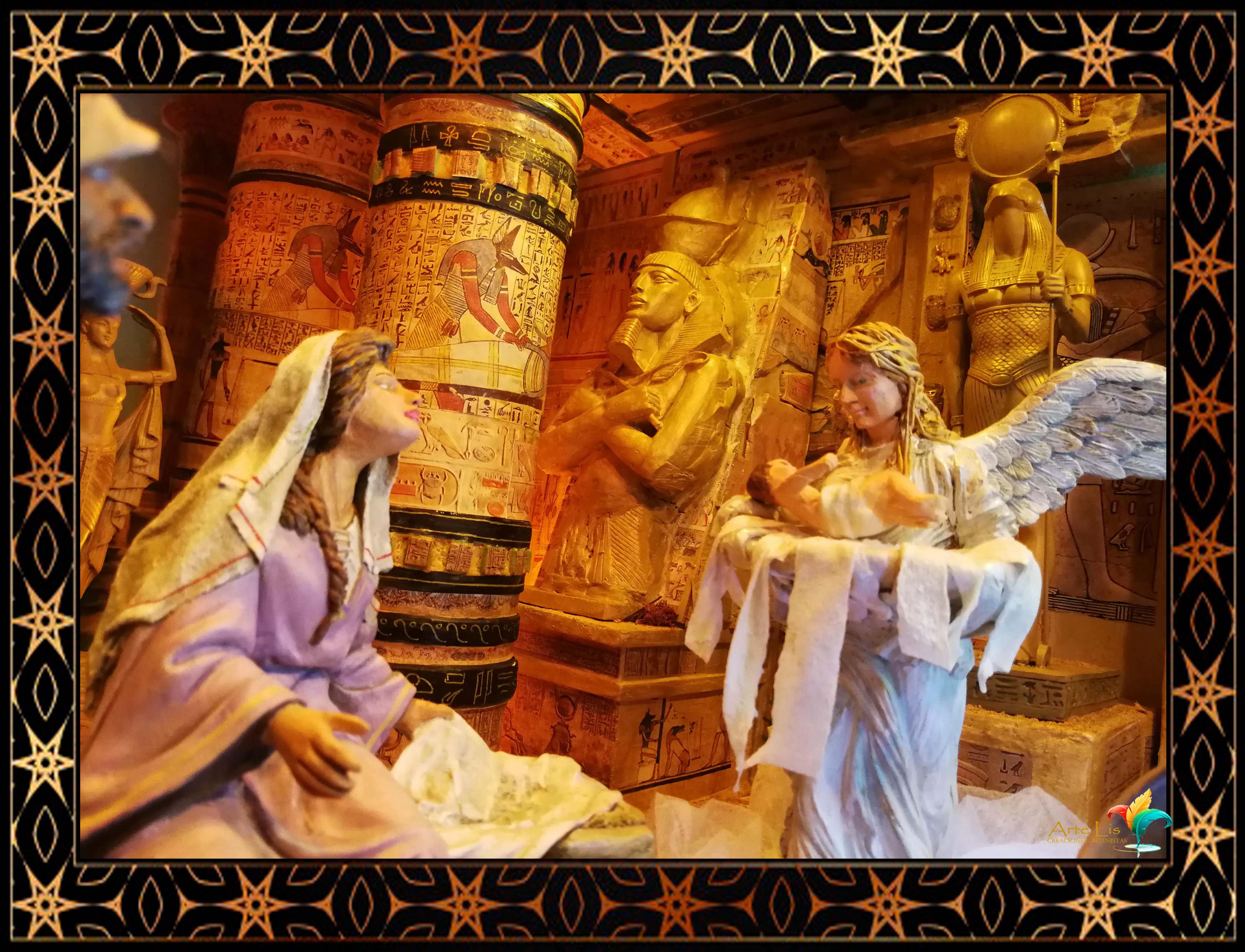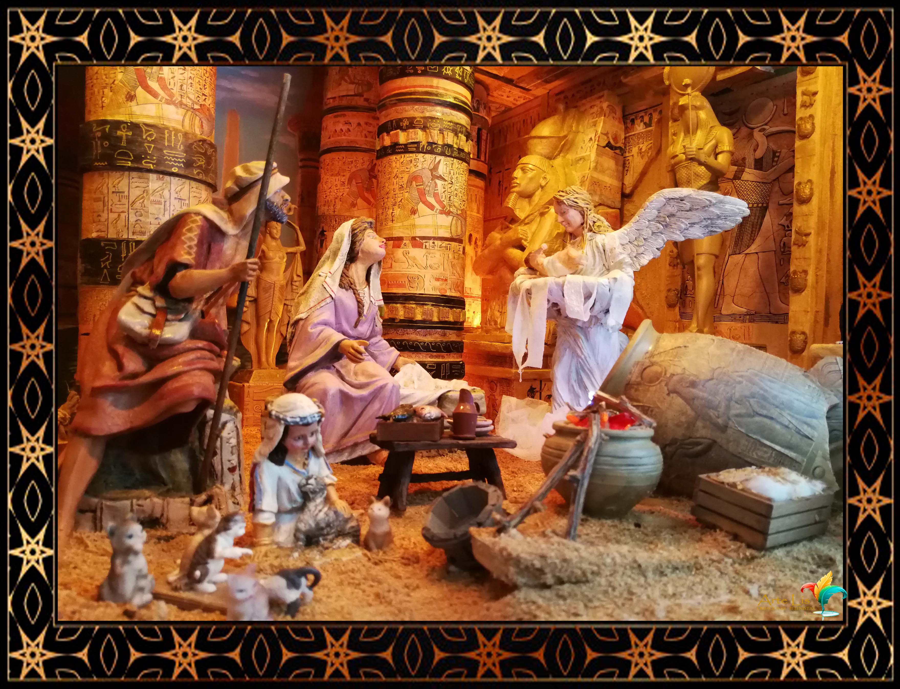 Buenas tardes foreros belenistas, ya llego nuestra época más deseada. Os adjunto el Diorama que hemos montado este año en mi casa, se trata de una escena ambientada en Egipto, la aparición del Angel cogiendo en su regazo al niños, ante la atenta mirada de José y María, y la inocencia de una niña jugando con unos gatos ausente de lo que está sucediendo.