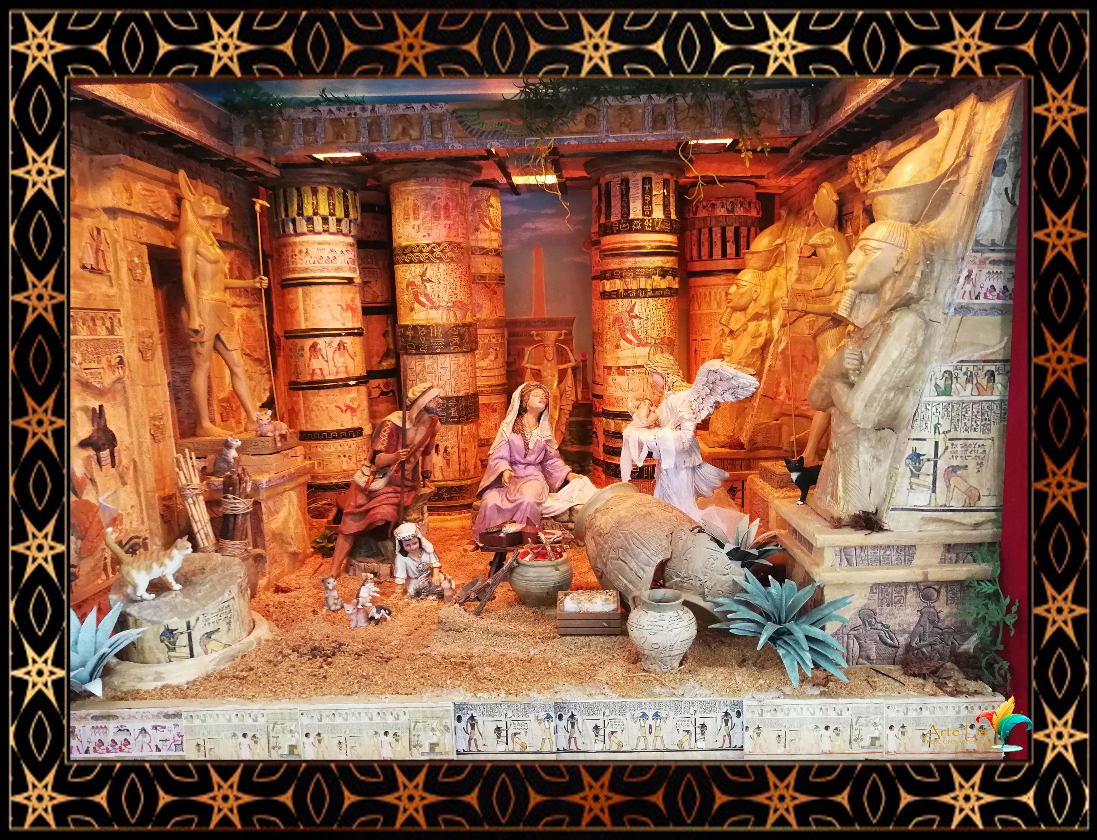 Buenas tardes foreros belenistas, ya llego nuestra época más deseada. Os adjunto el Diorama que hemos montado este año en mi casa, se trata de una escena ambientada en Egipto, la aparición del Angel cogiendo en su regazo al niños, ante la atenta mirada de José y María, y la inocencia de una niña jugando con unos gatos ausente de lo que está sucediendo.