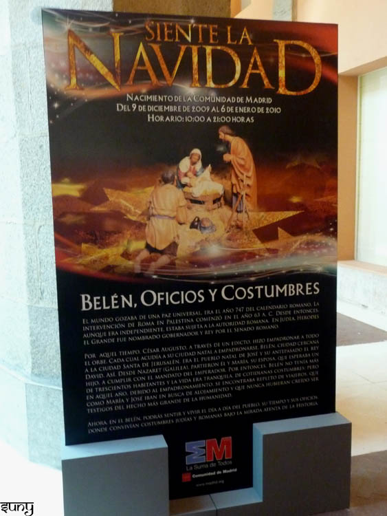 Intuyo, y esta es una opinión personal, que la buena acogida que siempre ha dispensado Dª Esperanza Aguirre a la ABM, mezclado con el deseo de agradarla, a ella en especial, ha forzado al diseño de un Belén monumental, excelentemente bien montado, a todo lujo; con música ambiental y conciertos en vivo de villancicos con coros que se alternan en el horario especialmente el festivo; muestrario completo de la excelente obra de JL Mayo en todos tamaños; lujo de figuras, instalaciones y complementos de todo tipo de oficios, pero...me faltó el mensaje .