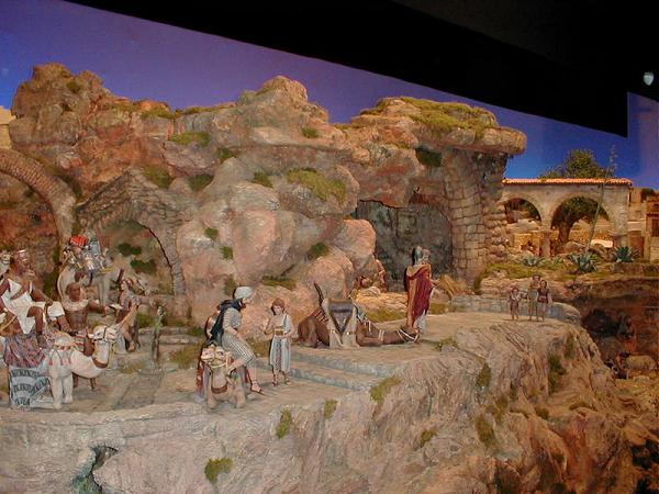 Tengo la satisfación de poneros fotografi¡ías del Belen Bancaja realizadas en el mismo día de su apertura y que tuve la oportunidad de realizar en la visita que hicimos conjuntamente los foreros del encuentro en Sevilla con la Asociación de Belenistas de Sevilla.