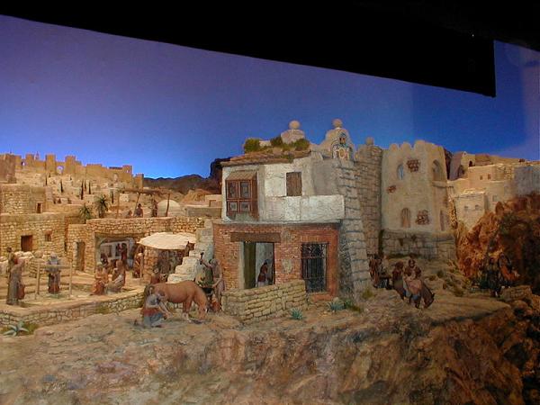 Tengo la satisfación de poneros fotografi¡ías del Belen Bancaja realizadas en el mismo día de su apertura y que tuve la oportunidad de realizar en la visita que hicimos conjuntamente los foreros del encuentro en Sevilla con la Asociación de Belenistas de Sevilla.